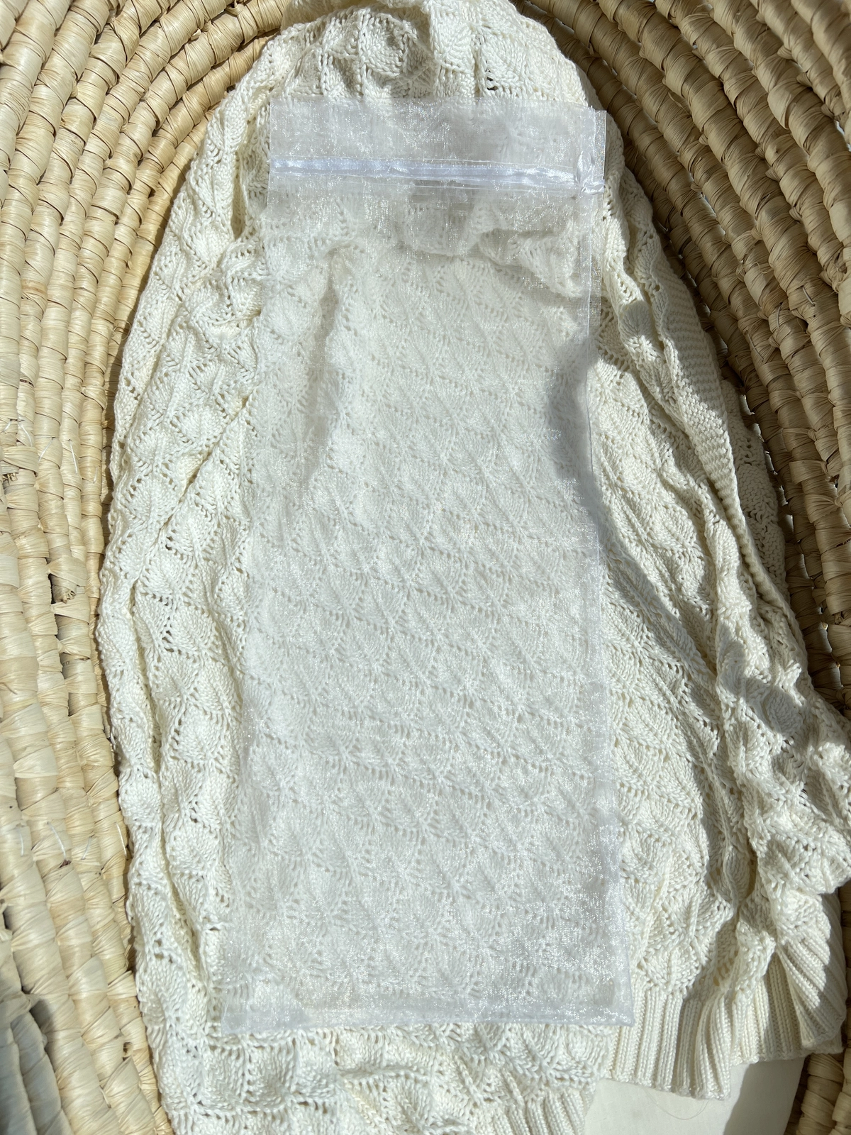 - Biały woreczek prezentowy z organzy – do lalek Angela w sukience (20× 50 cm)