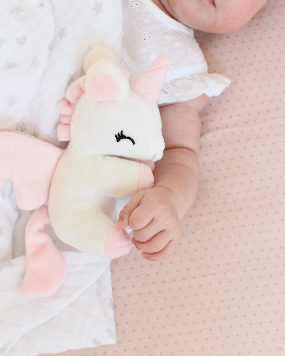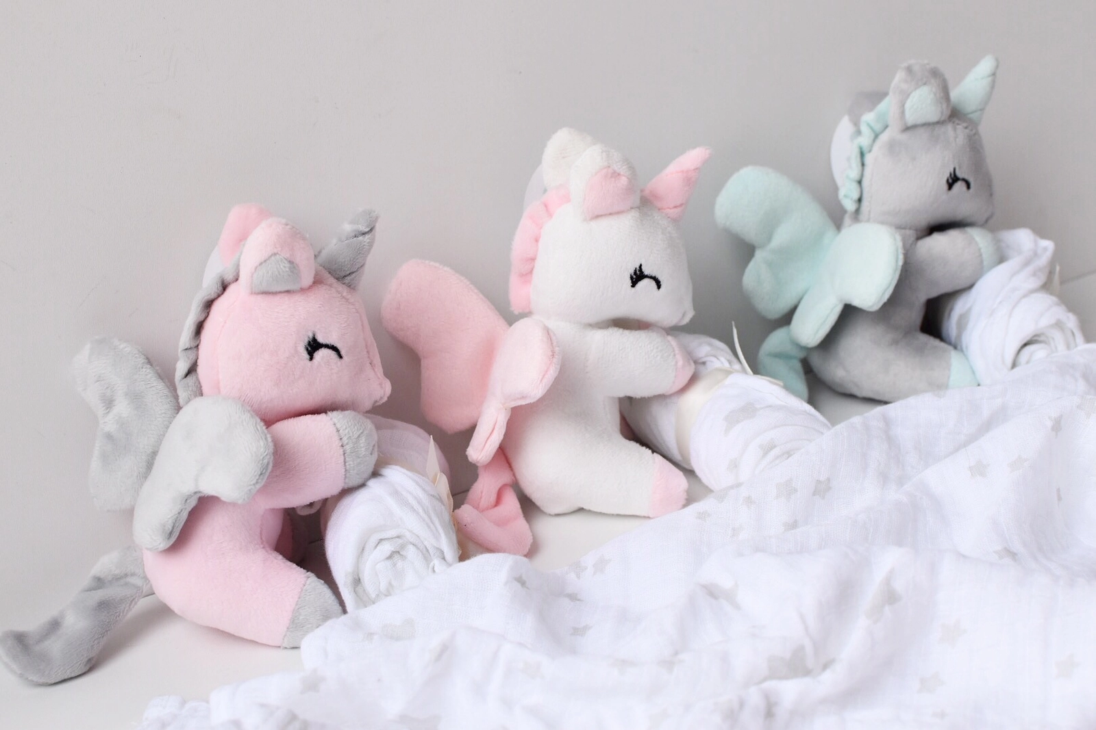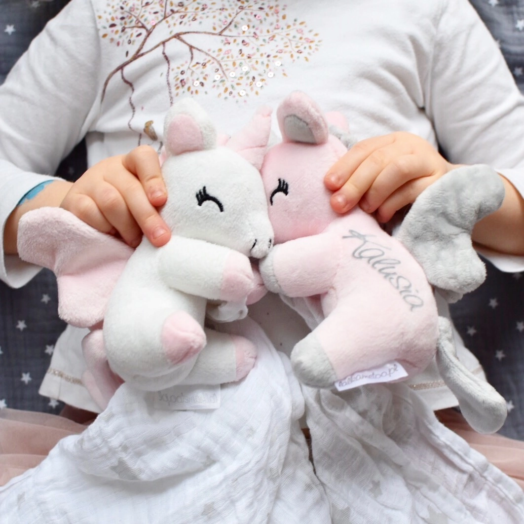 Przesłodki jednorożec w bajecznie pastelowych kolorach szybko stanie się ulubioną przytulanką na długie lata. Mięciutki i milutki materiał, skrzydełka i nosek w kształcie serduszka oraz "uśmiechnięte" oczka to znaki szczególne tej maskotki.
