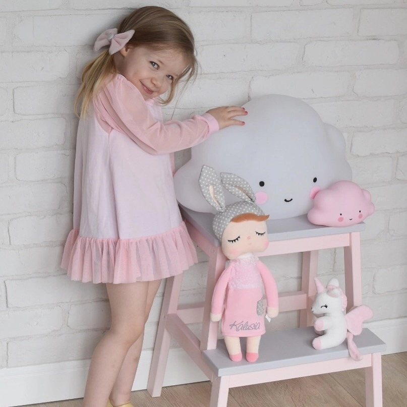 Lalka może zostać na życzenie spersonalizowana. Jeśli wybiorą Państwo opcję z imieniem należy w okienku wpisać treść napisu oraz wybrać jego kolor.