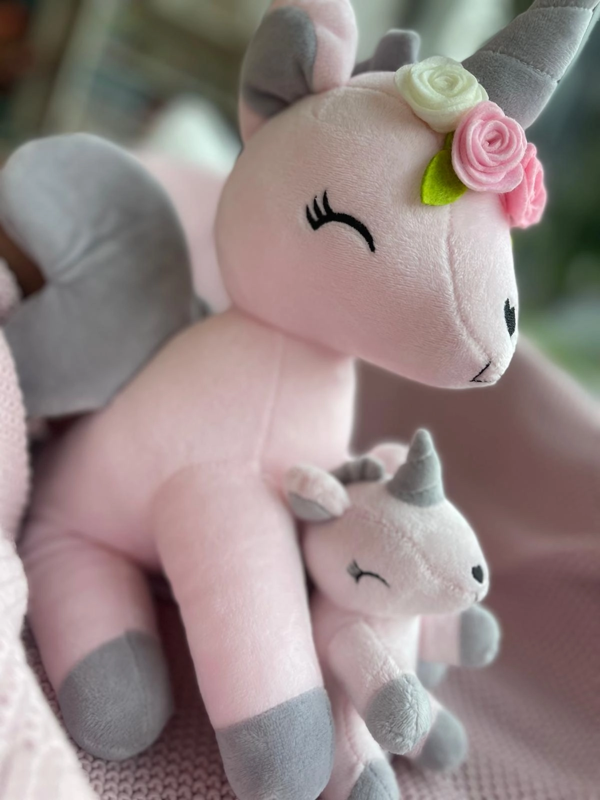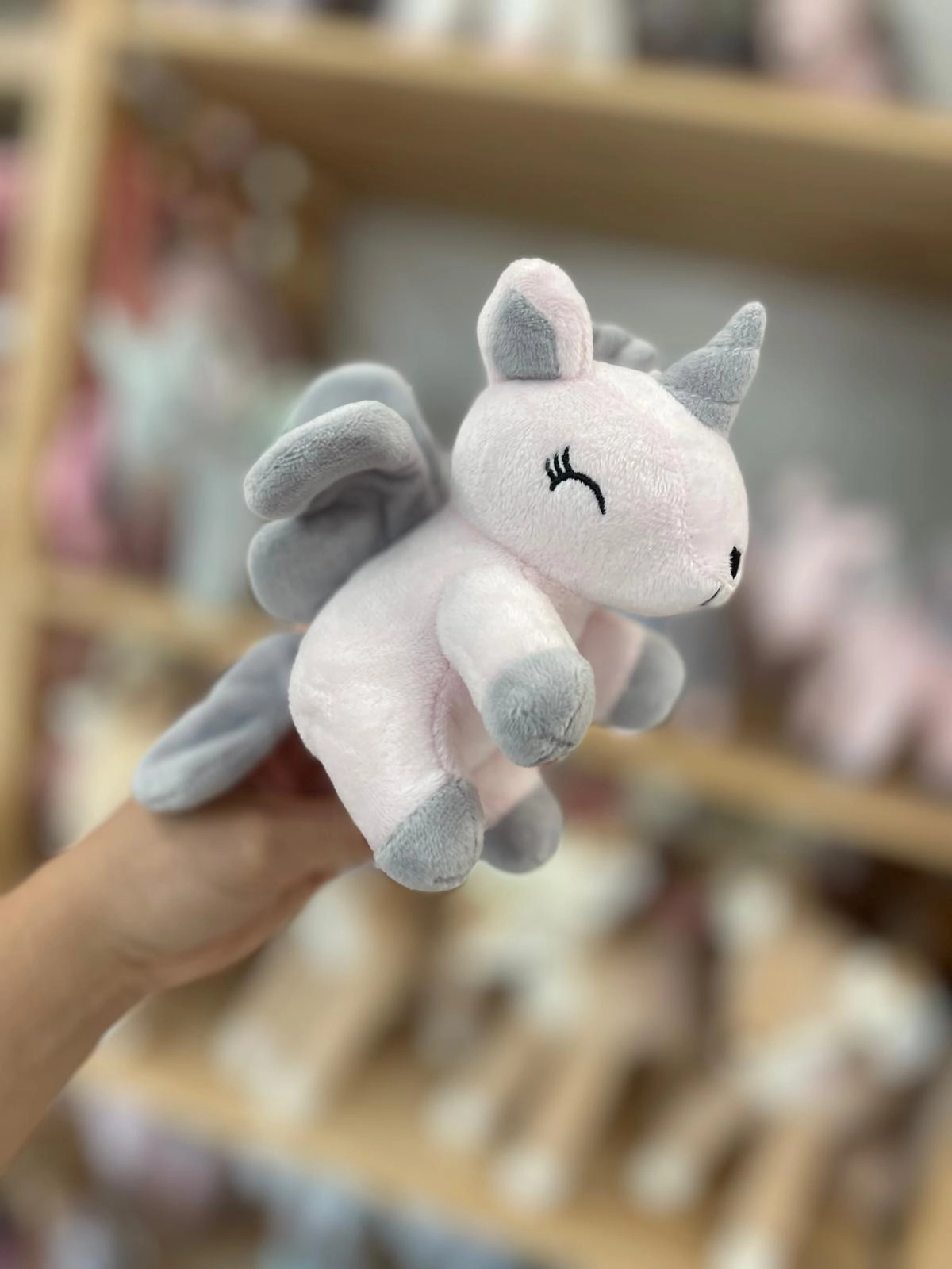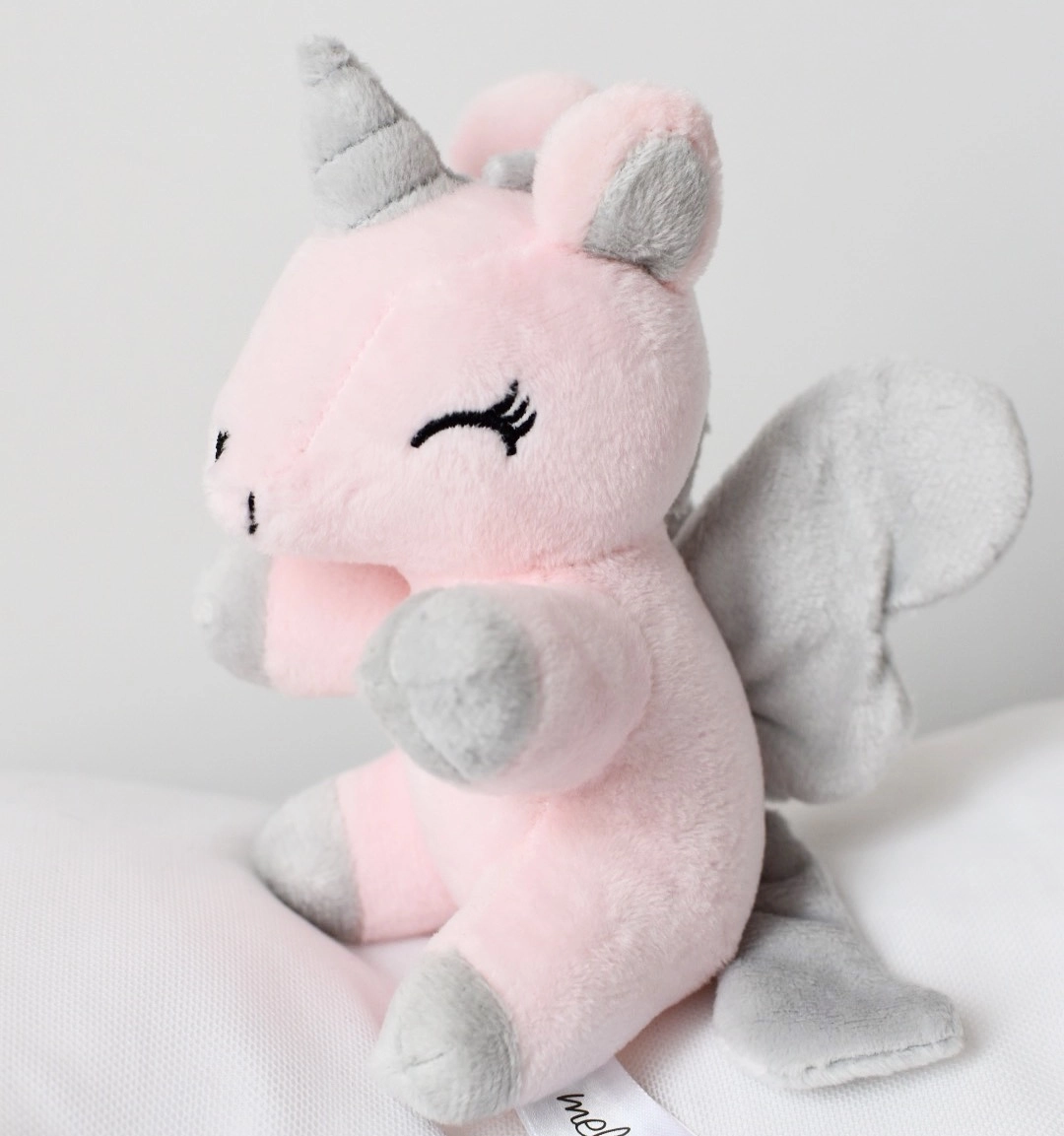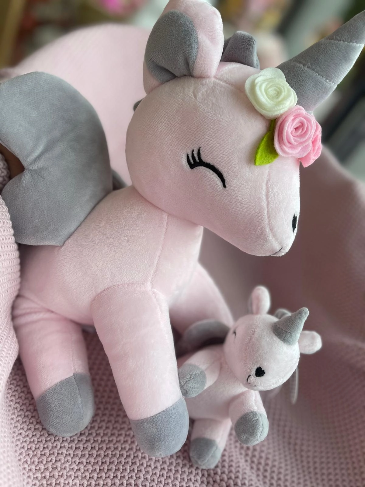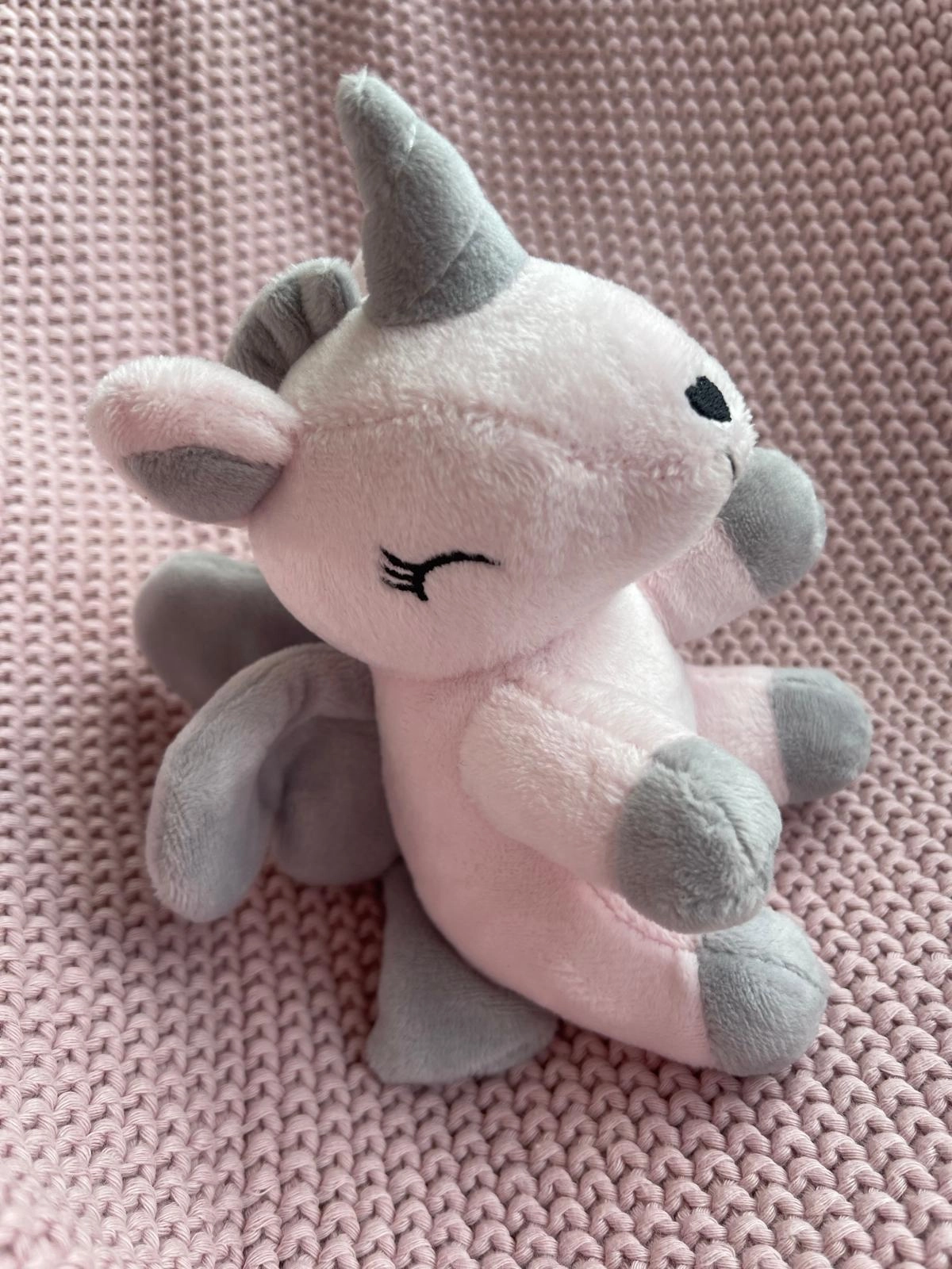 Przesłodki jednorożec w bajecznie pastelowych kolorach szybko stanie się ulubioną przytulanką na długie lata. Mięciutki i milutki materiał, skrzydełka i nosek w kształcie serduszka oraz "uśmiechnięte" oczka to znaki szczególne tej maskotki.