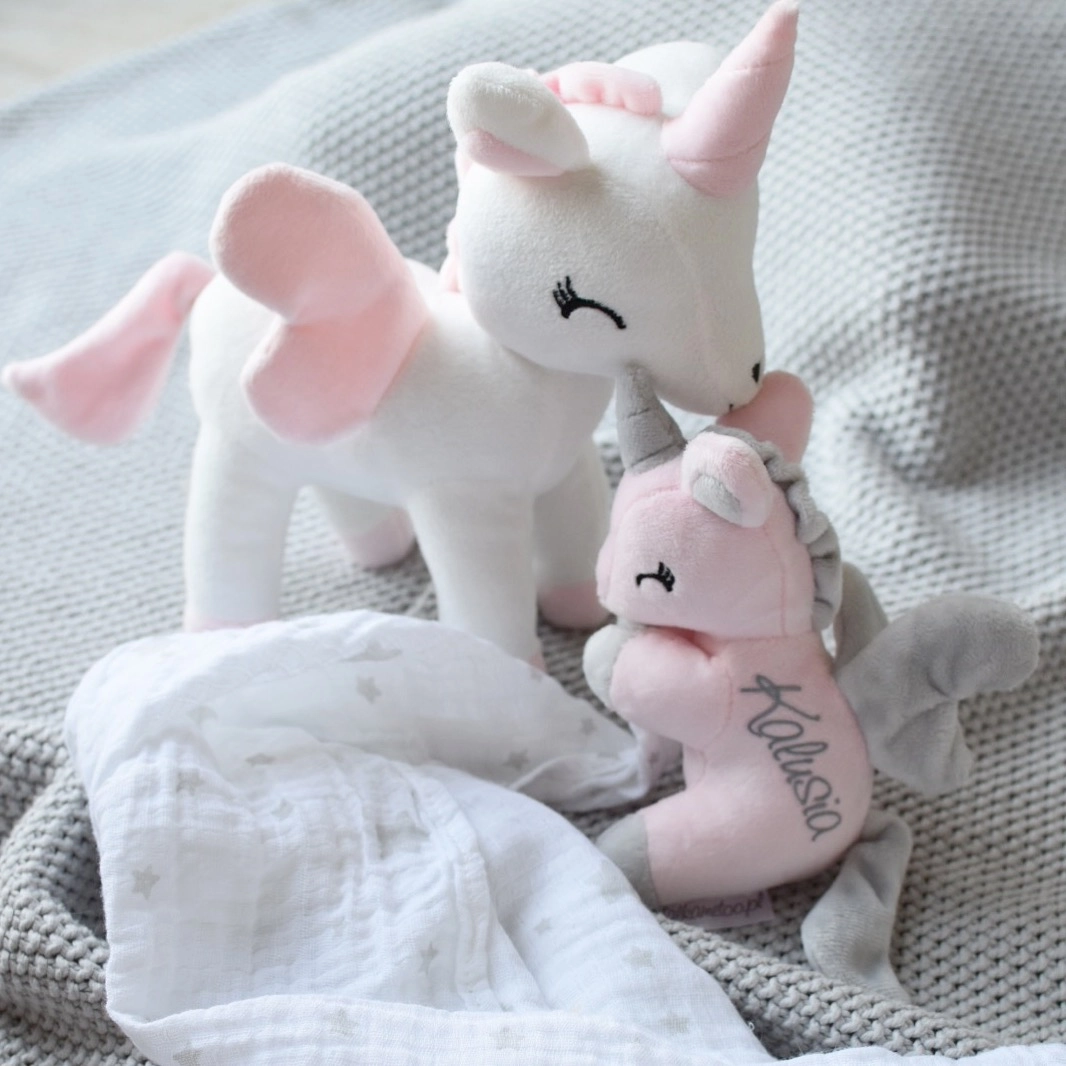 Jednorożec może zostać na życzenie spersonalizowany. Jeśli wybiorą Państwo opcję z imieniem należy w okienku wpisać treść napisu oraz wybrać jego kolor.