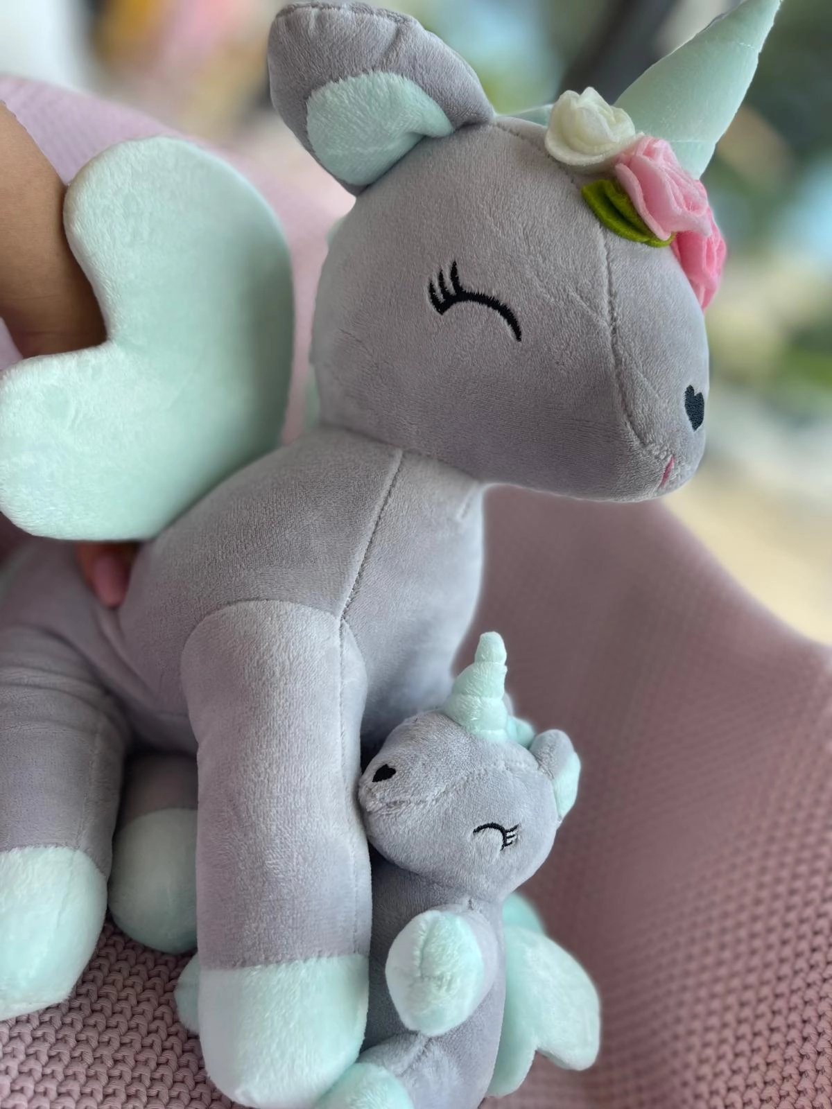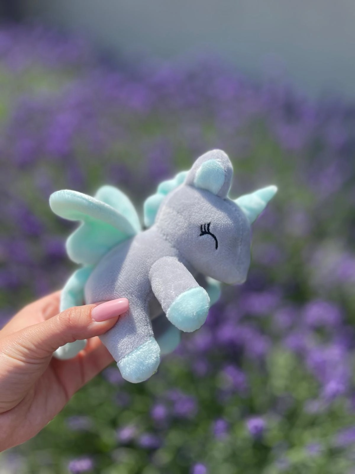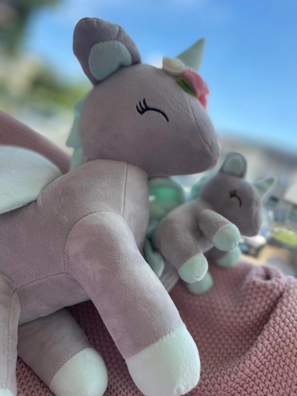 Przesłodki jednorożec w bajecznie pastelowych kolorach szybko stanie się ulubioną przytulanką na długie lata. Mięciutki i milutki materiał, skrzydełka i nosek w kształcie serduszka oraz "uśmiechnięte" oczka to znaki szczególne tej maskotki.