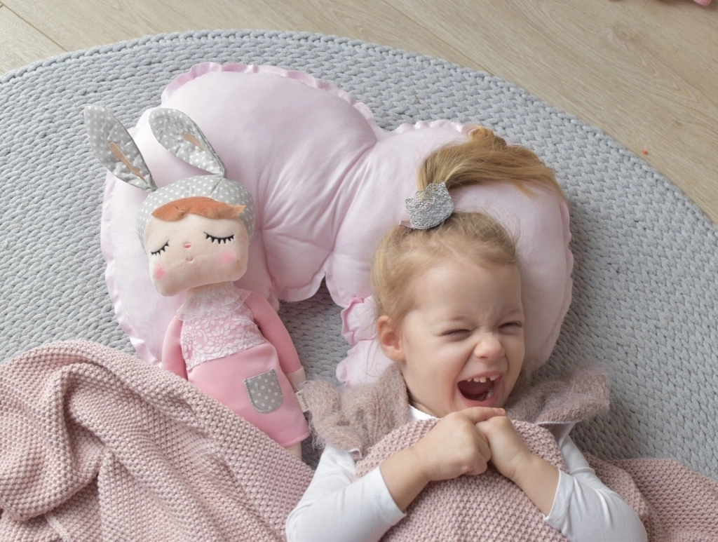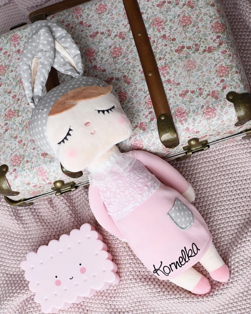 Śpiąca lala Metoo z uszkami w różowej sukience