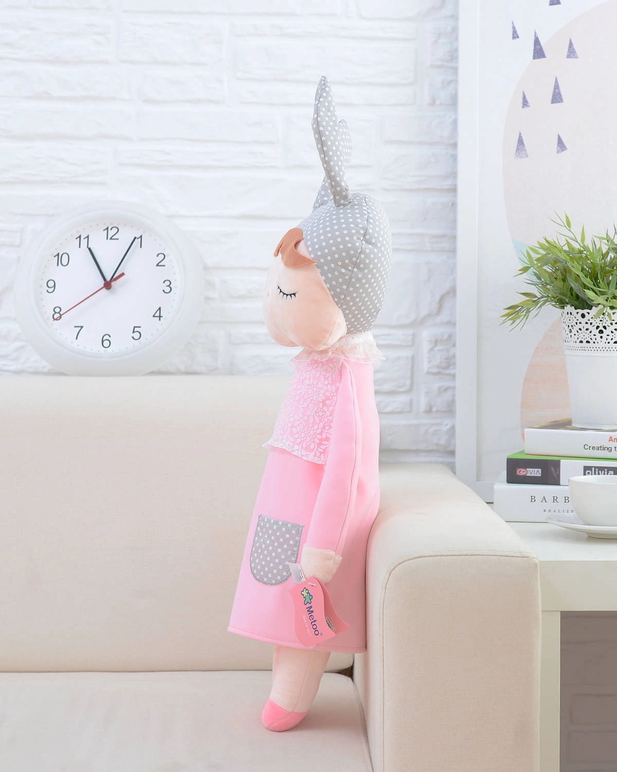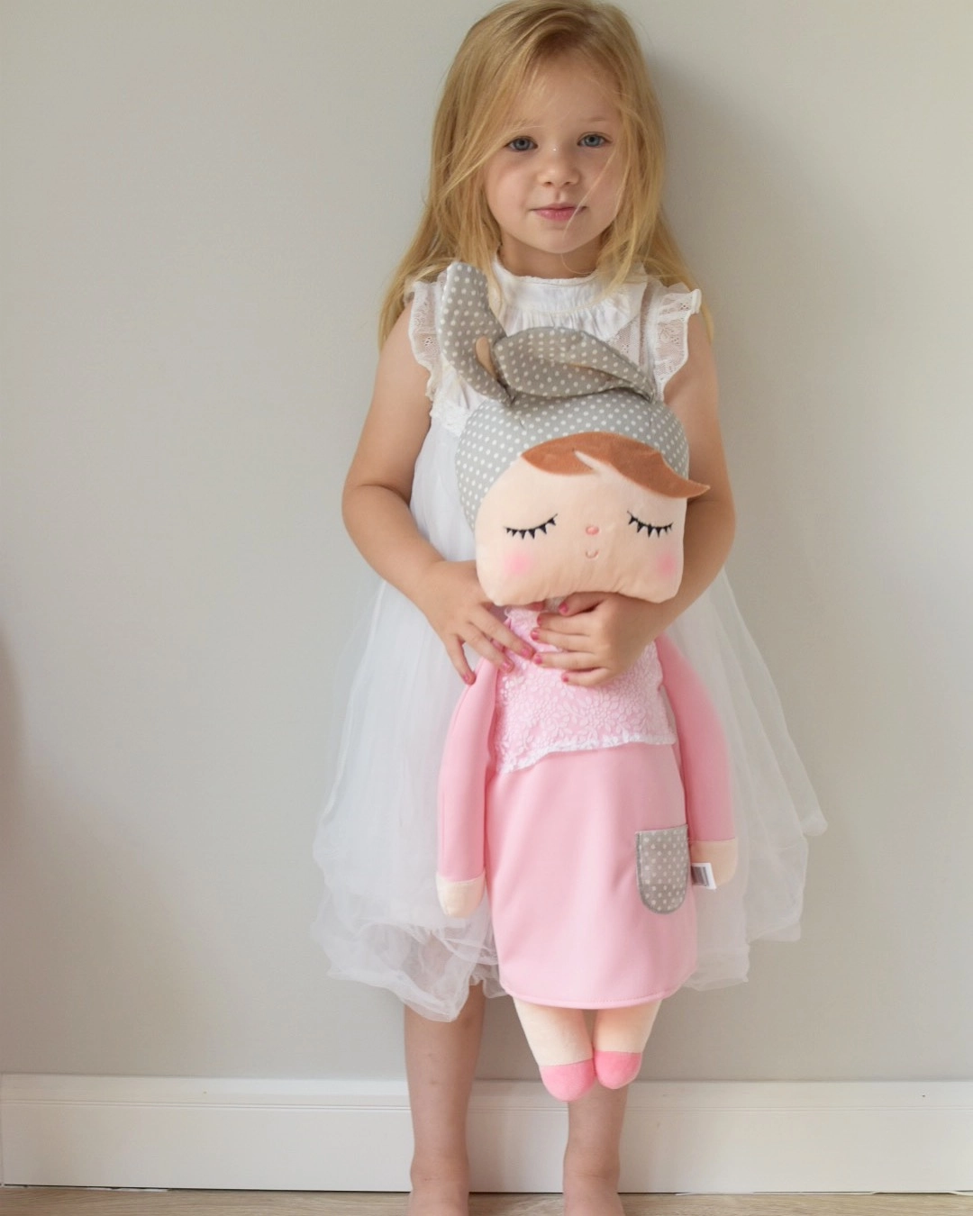 Śpiąca lala z uszkami w różowej sukience to niewątpliwie jeden z najpopularniejszych modeli Metoo w naszej ofercie! Zdobyła serca nie tylko dzieci, ale i rodziców na całym świecie. Jest obowiązkowym elementem pokoju dziecięcego w stylu skandynawskim. Wykonana z bezpiecznego i mięciutkiego materiału. Jest idealna do przytulania jak i do dekoracji.