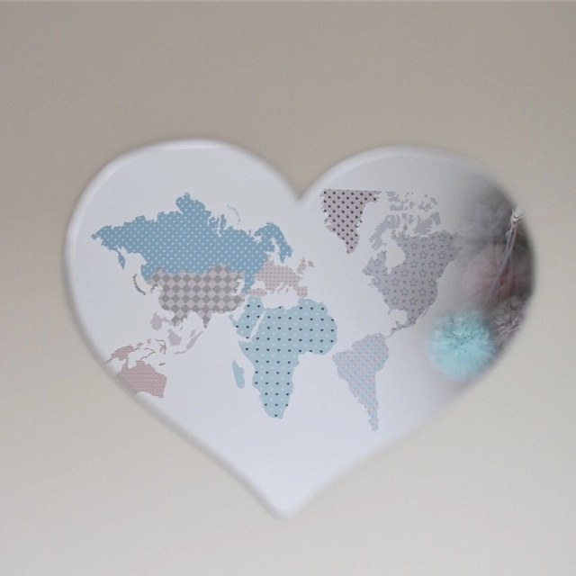 Lekkie, nietłukące się akrylowe lusterko w kształcie serduszka do powieszenia na ścianie za metalowy haczyk. Piękna i zabawna dekoracja pokoju.