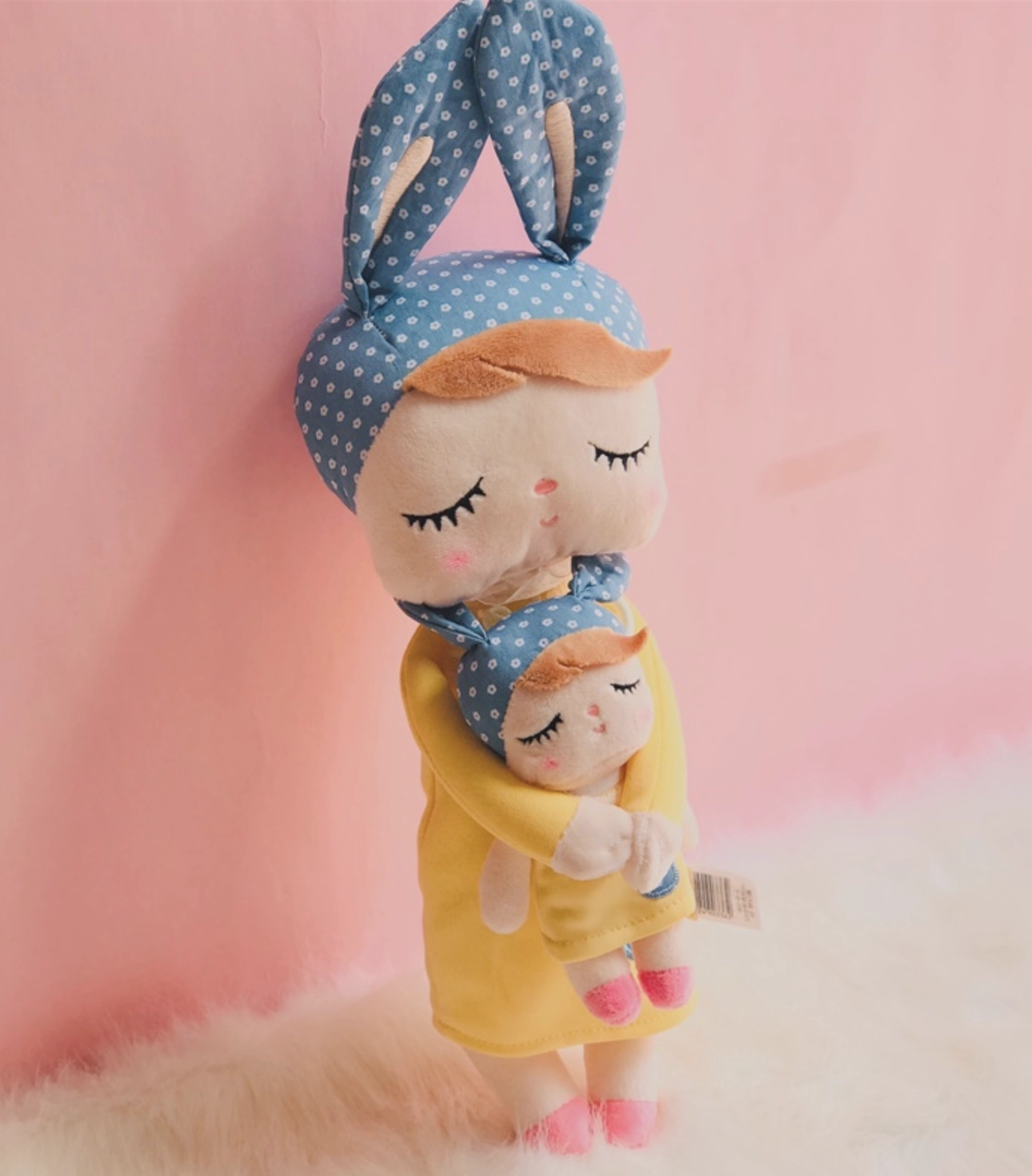 Lalka Metoo z uszkami w pastelowych kolorach. W całości wykonana z mięciutkiego materiału.