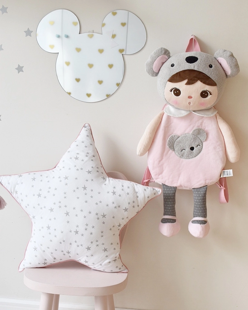 - Duży i leciutki plecak z wizerunkiem lalki koala. Najlepszy przyjaciel w drodze do przedszkola lub podczas wakacyjnych wycieczek. Plecak jest zapinany na suwak, długość całkowita to ok 50cm licząc z uszkami .