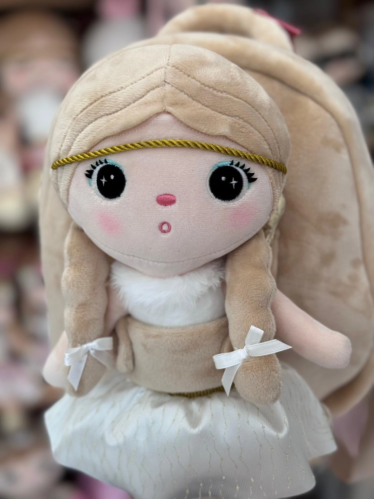 Plecak jest zamykany na suwak. Laleczkę Aniołek 31 cm można wyjąć jako osobny element zestawu.