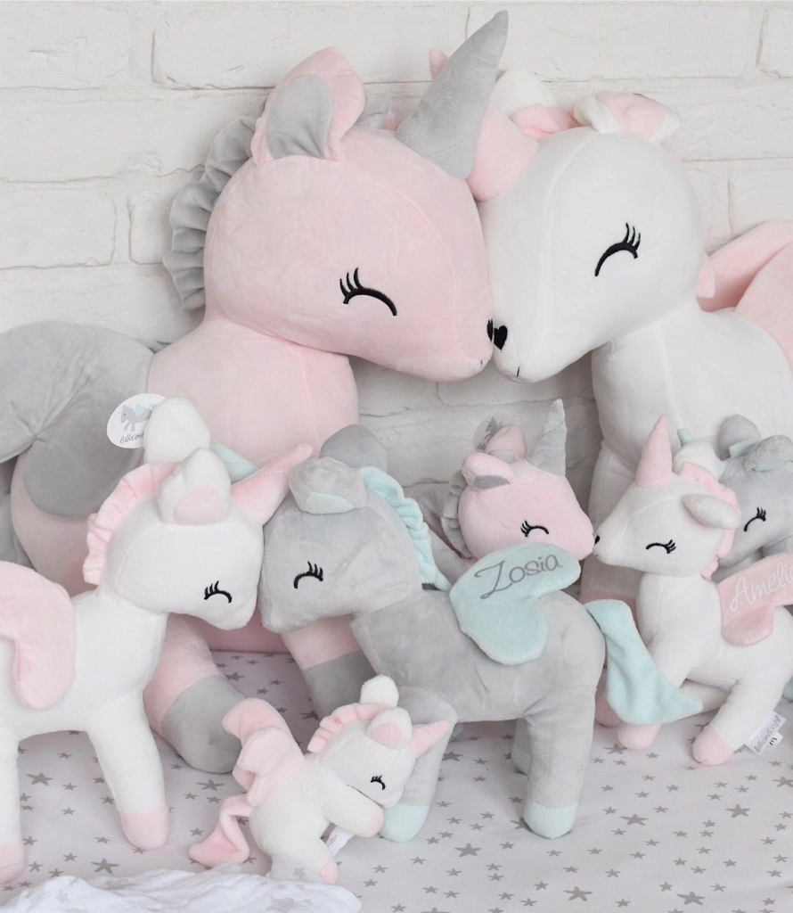 Przesłodki jednorożec w bajecznie pastelowych kolorach szybko stanie się ulubioną przytulanką na długie lata. Mięciutki i milutki materiał, skrzydełka i nosek w kształcie serduszka oraz "uśmiechnięte" oczka to znaki szczególne tej maskotki.