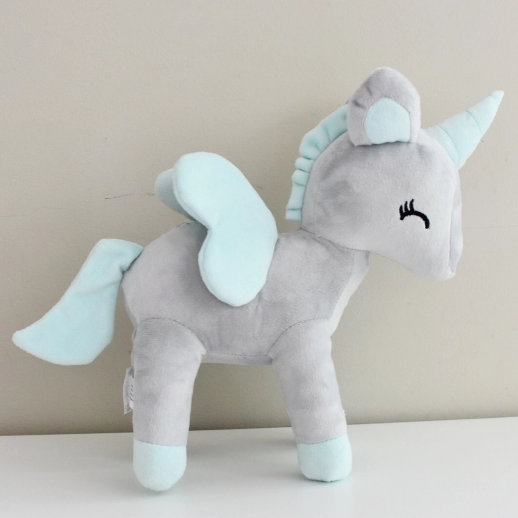 Przesłodki jednorożec w bajecznie pastelowych kolorach szybko stanie się ulubioną przytulanką na długie lata. Mięciutki i milutki materiał, skrzydełka i nosek w kształcie serduszka oraz "uśmiechnięte" oczka to znaki szczególne tej maskotki.