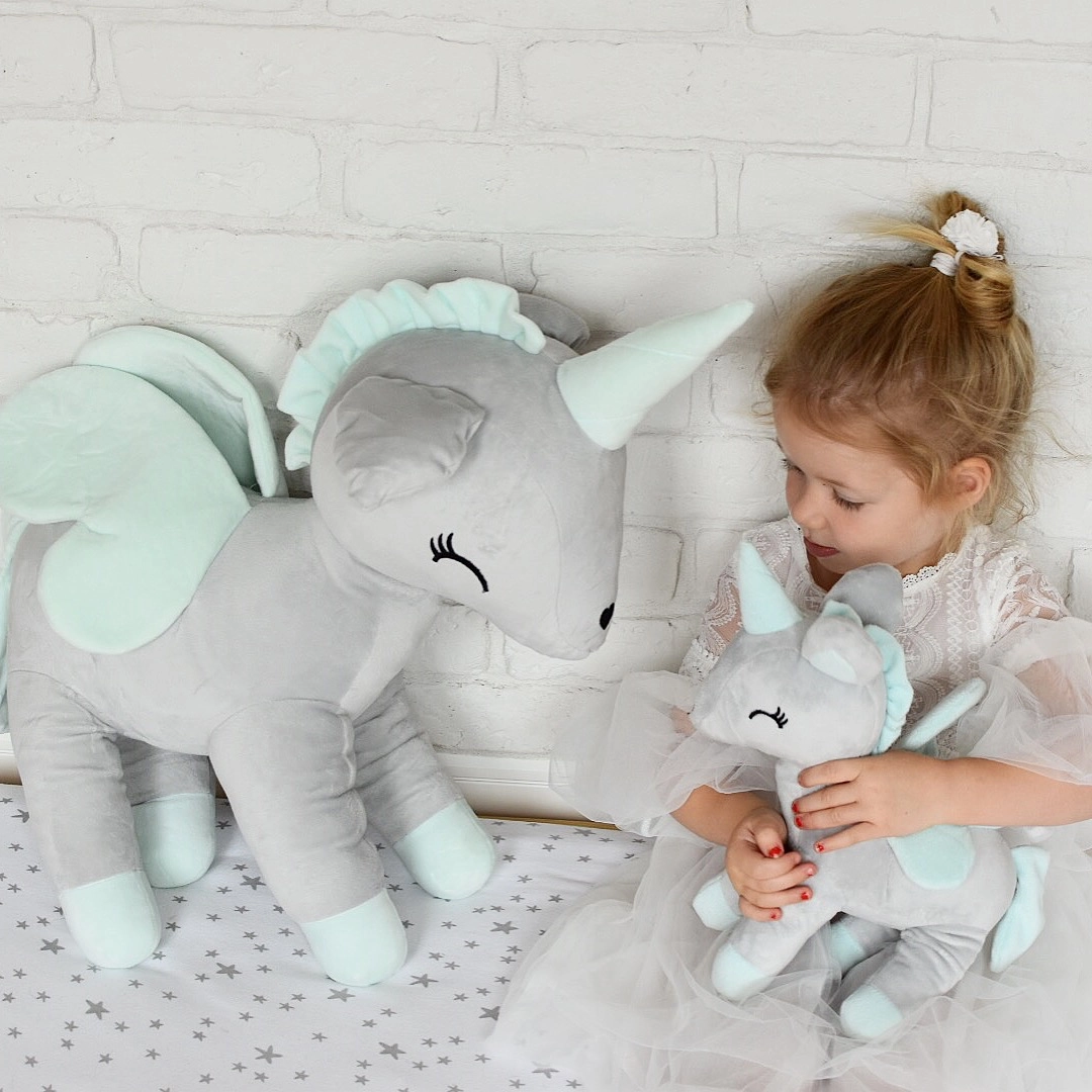 Pluszowy jednorożec rozmiar XL - Szaro/miętowy