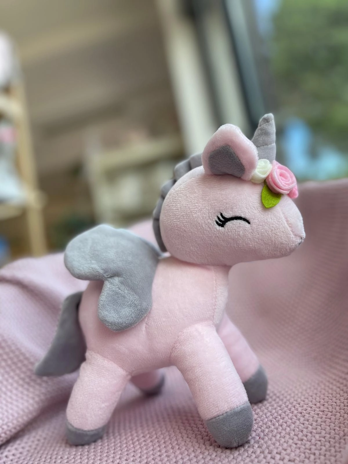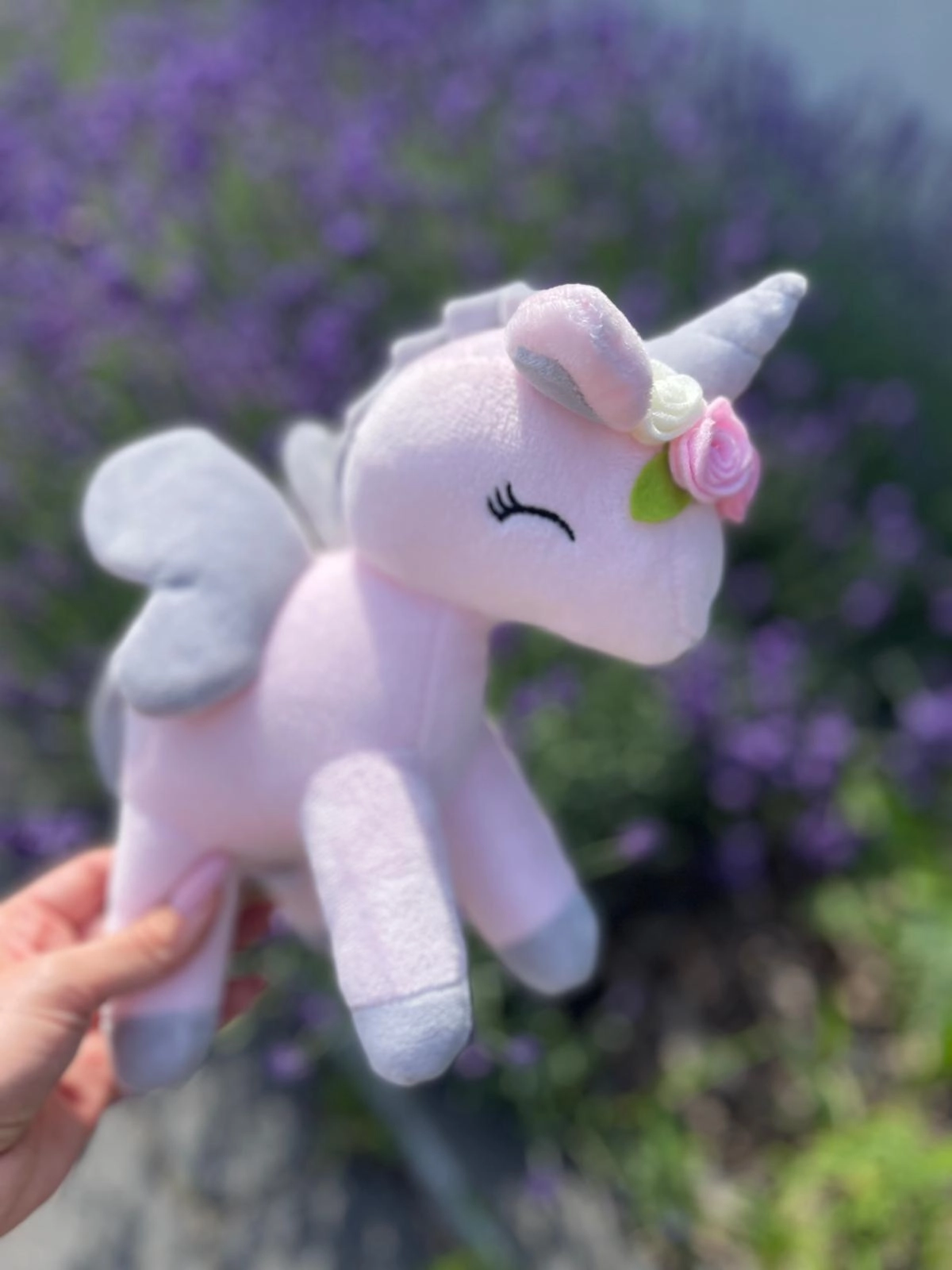 Przesłodki jednorożec z wianuszkiem w bajecznie pastelowych kolorach szybko stanie się ulubioną przytulanką na długie lata. Mięciutki i milutki materiał, skrzydełka i nosek w kształcie serduszka oraz "uśmiechnięte" oczka to znaki szczególne tej maskotki.