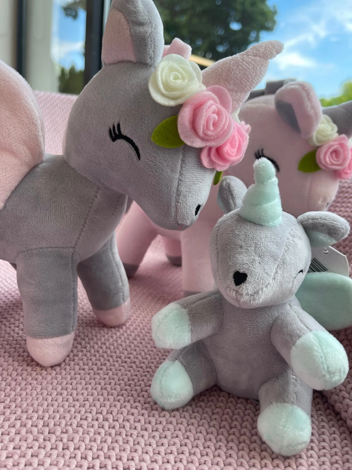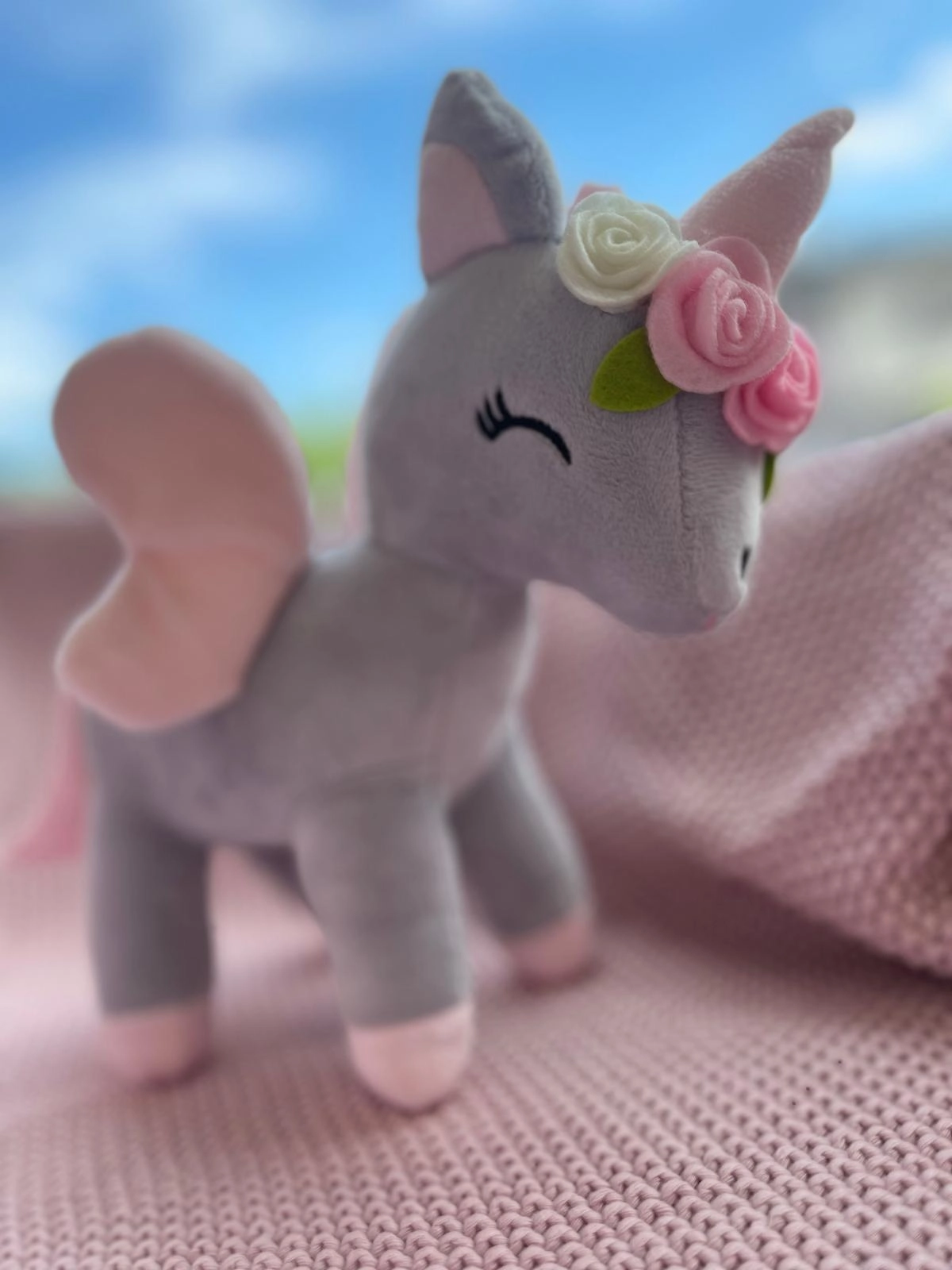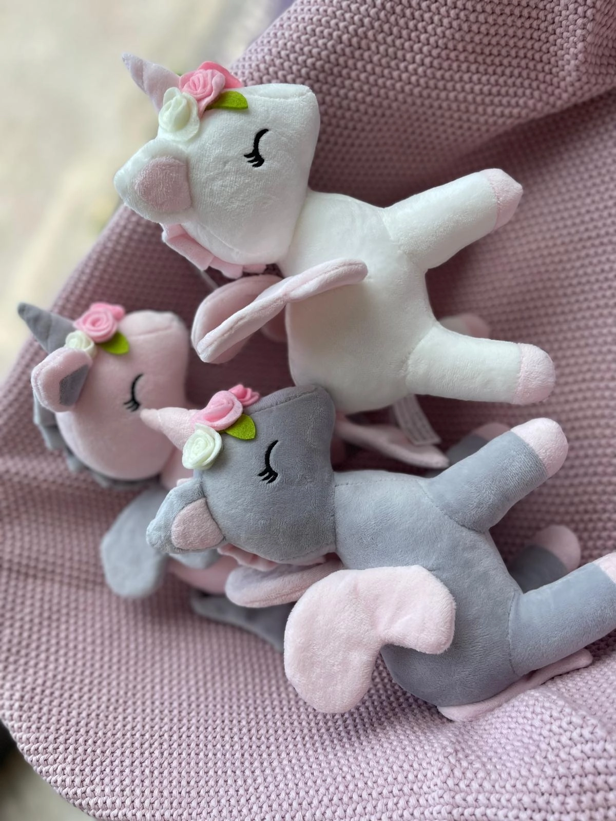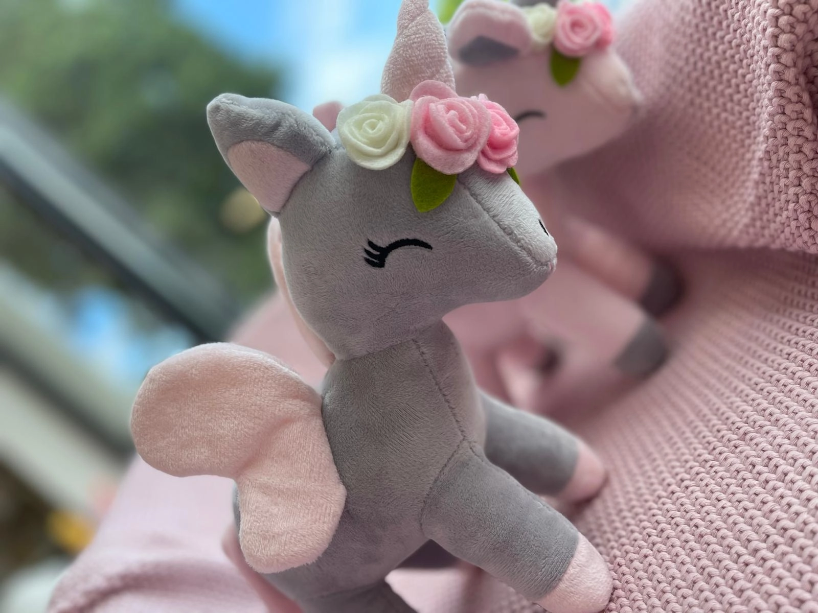Pluszowy Jednorożec z wianuszkiem rozmiar M- Szaro/Różowy