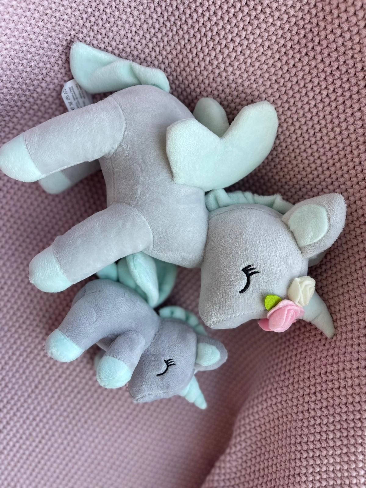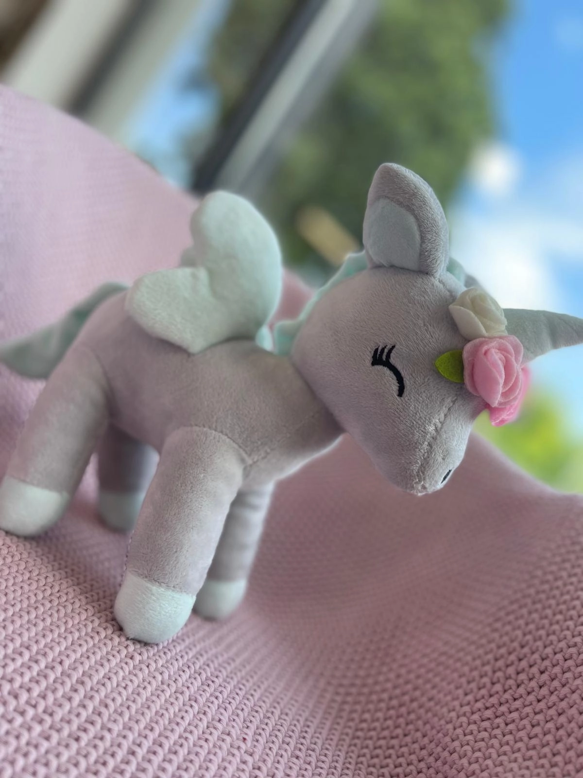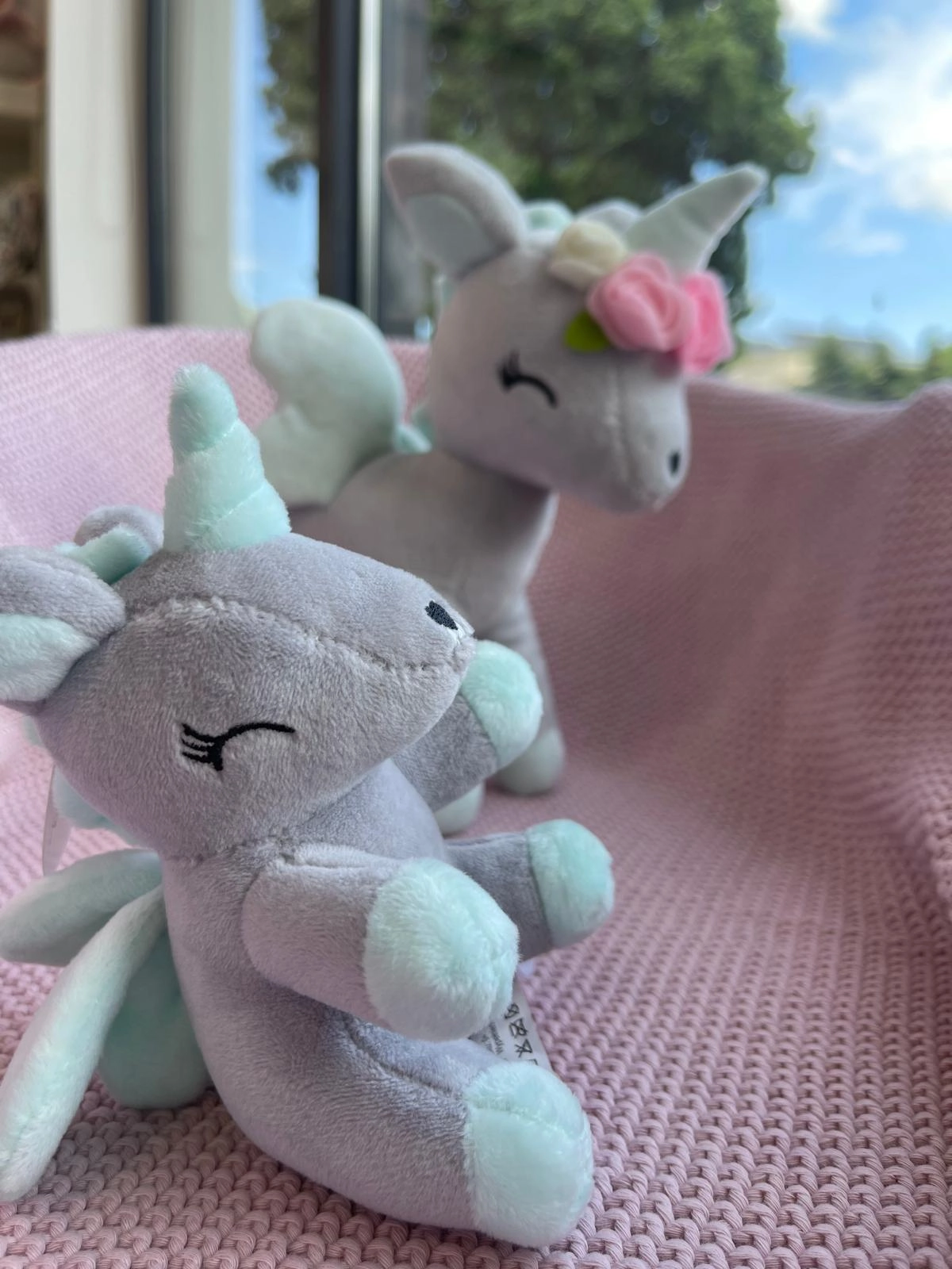 Pluszowy Jednorożec z wianuszkiem rozmiar M- Szaro/miętowy