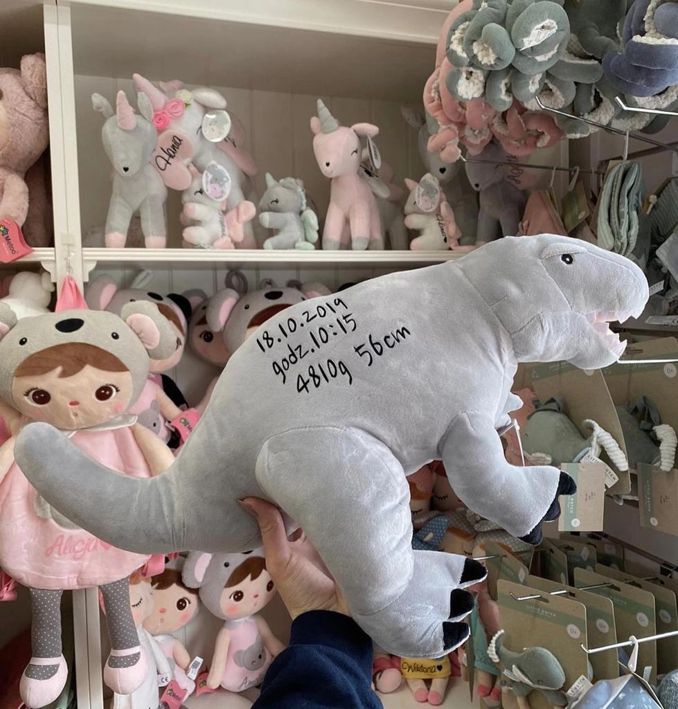 Dinozaury mogą zostać spersonalizowane na Państwa życzenie. Napis umieścimy jest na grzbiecie dunosaura. Po wybraniu tej opcji proszę w okienku wpisać imię i wybrać jego kolor.