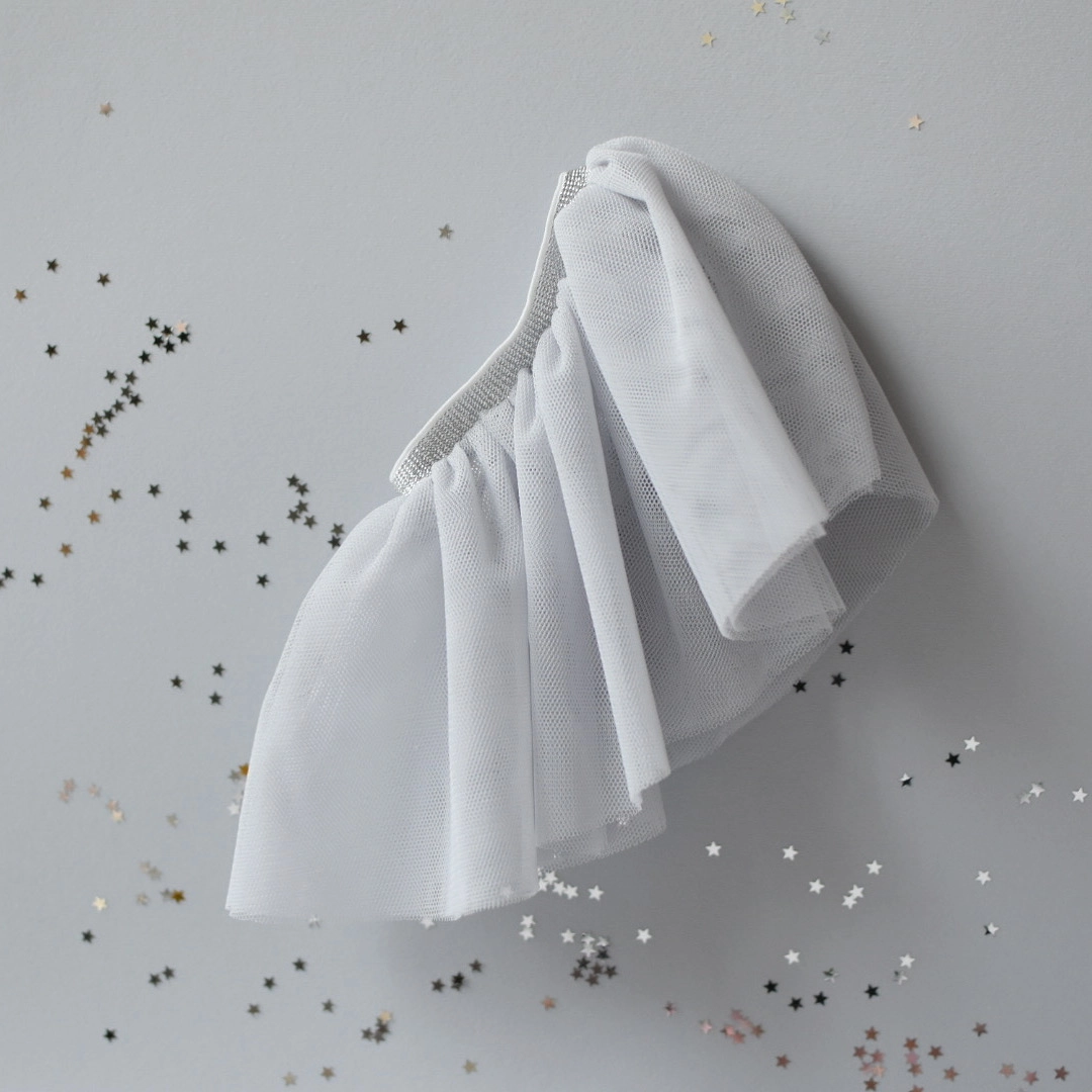 Tiulowa spódniczka w kolorze szarym ozdobiona srebrna gumką to nasza propozycja dla laleczek z nowej kolekcji Metoo & Melootka. Lalki Aniołki lub Balerina mają zdejmowane spódniczki, więc nowe ubranka idealnie się sprawdzą podczas zabawy tymi laleczkami.